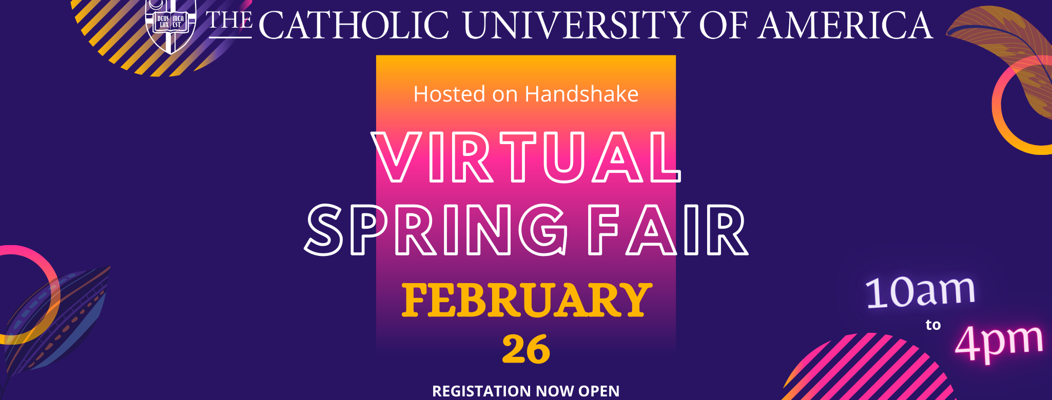 Join us on Friday, Feb 26th The Catholic University Spring 2021 Virtual Career Fair register on Handshake and then sign up for a session with an Employer. There will be more than 50 employers with a variety of industries represented. Take this opportunity for: